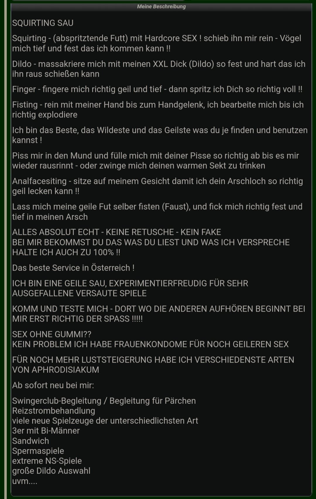 Derzeit keine Reservierung (Die hier beschriebenen Informationen zu dieser Dame, mit allen persönlichen Angaben, Service-Liste und Fotos wurde im Auftrag der dargestellten Dame erstellt.)